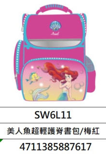 • 美人魚超輕護脊書包/梅紅